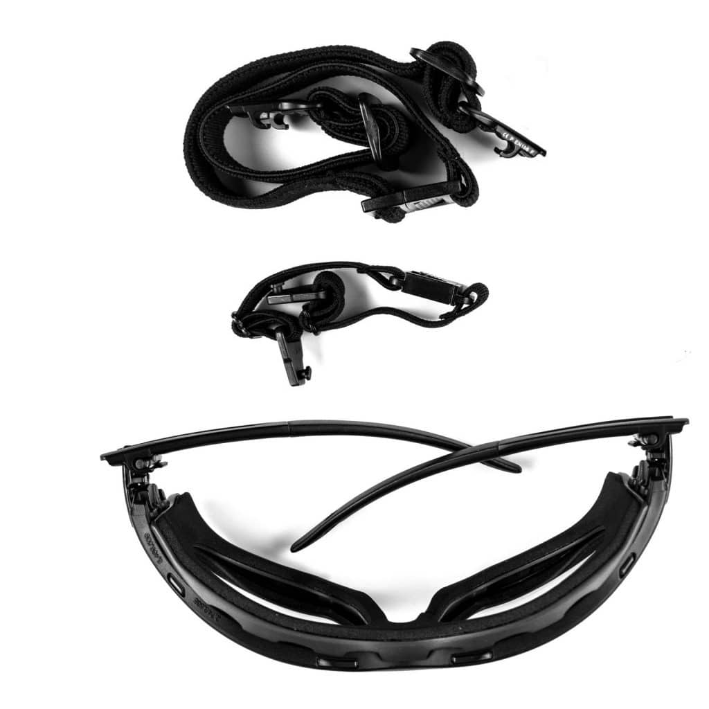 The goggles arrive in a branded bag that you can use for transport and cleaning. The Dual Window Lens ensures top-notch anti-fog performance by isolating temperature differences. The durable outer lens can withstand a point-blank hit from a 5 Joule airsoft rifle and is scratch-proof.