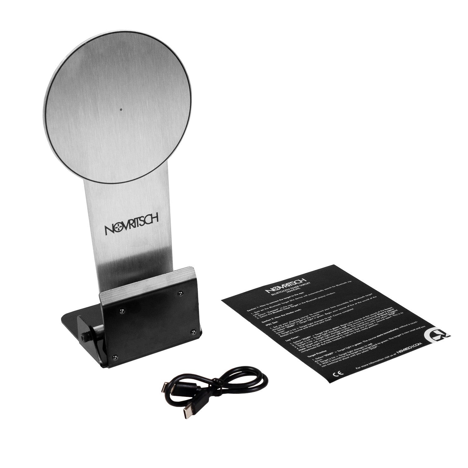 The target comes with a USB-C charging cable and a user manual.