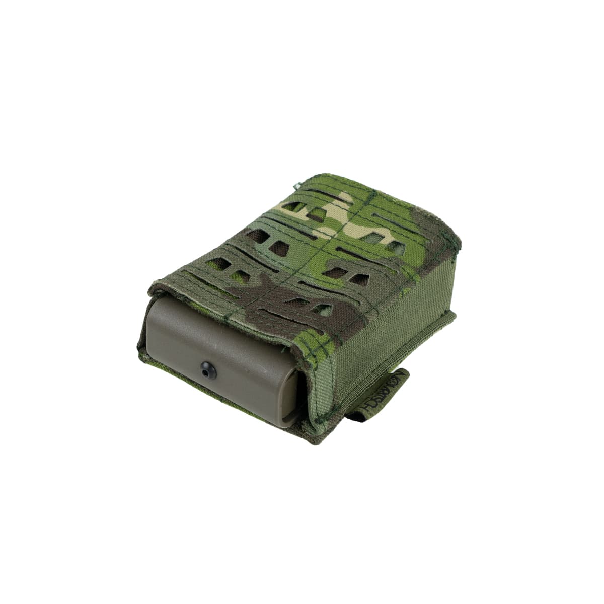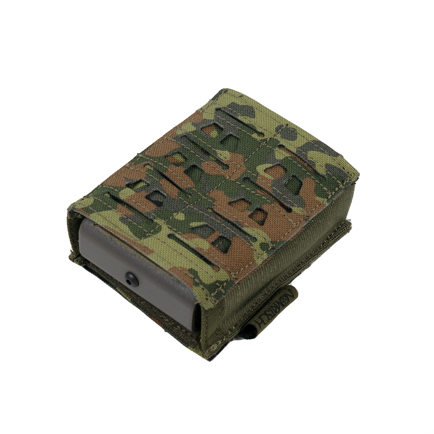 Crafted to seamlessly integrate with MOLLE systems, this pouch includes a durable plastic insert for enhanced stability.