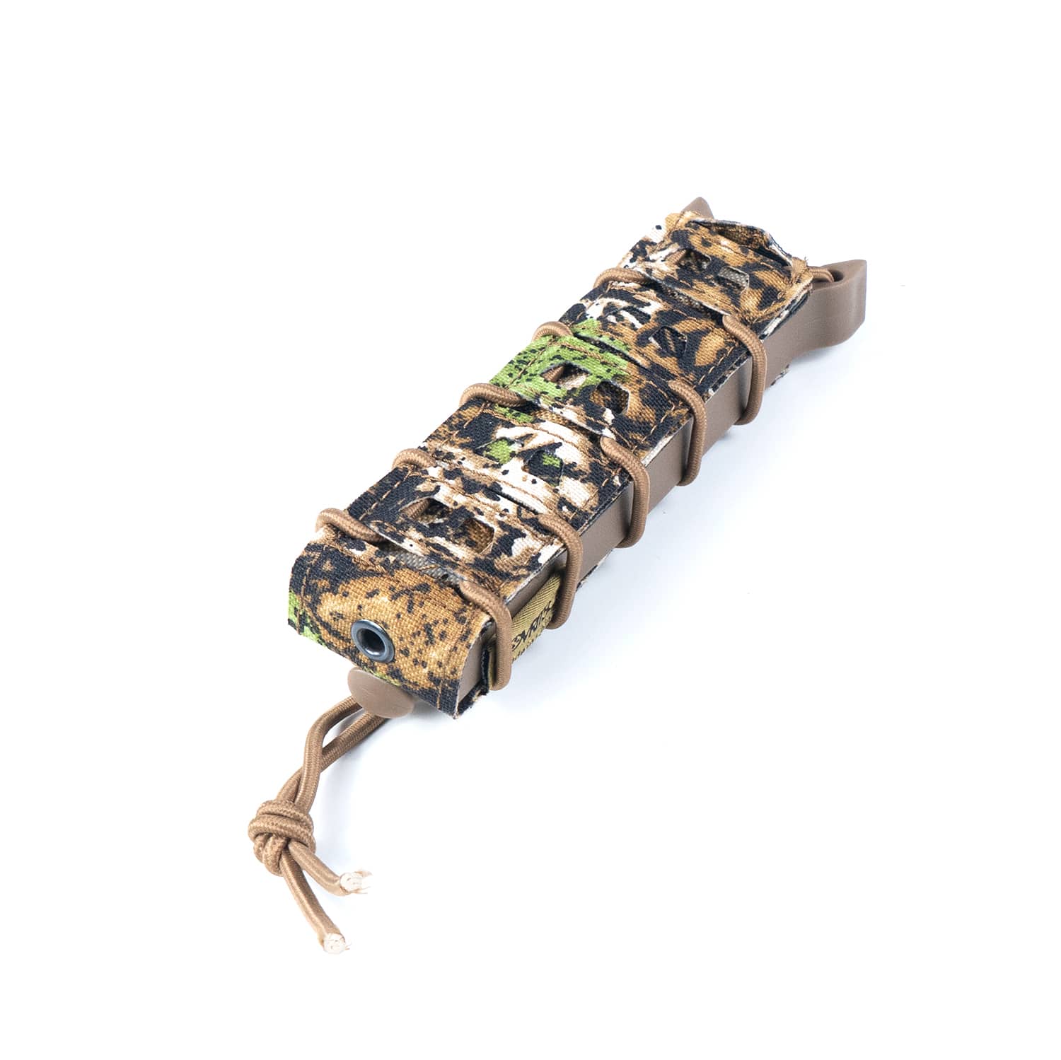 An enlarged open mag pouch made to hold extended mags as well as most SMG mags. The pouch is designed to streamline fast reloads, allowing you to adjust the retention by tightening/loosening the elastic cord. Featuring the laser-cut Molle for a contemporary design.